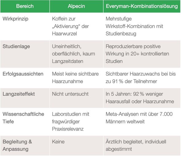 Alpecins Erfolg basiert demnach massgeblich auf einem geschickten Marketing-Konzept, das wissenschaftliche Seriosität vermittelt. Die Kernbotschaft „Koffein gegen Haarausfall“ klingt plausibel.